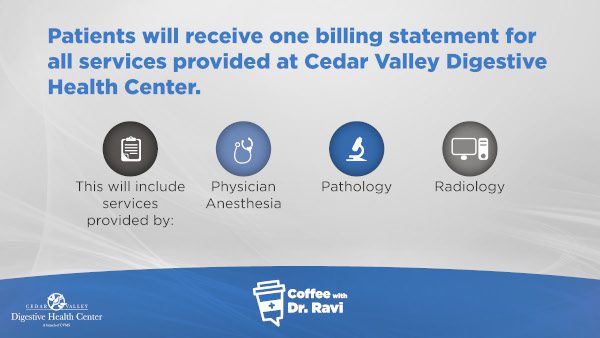 In this week’s video we are discussing the benefits of how the Cedar Valley Digestive Health Center processes billing and why it’s more convenient and easier for patients to understand. We are also covering why it is more cost-effective to choose Cedar Valley Digestive Health Center for your procedure.