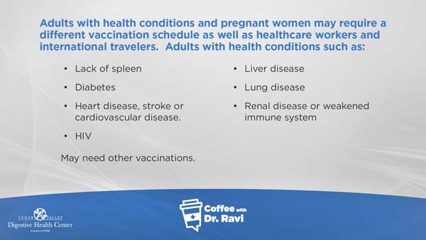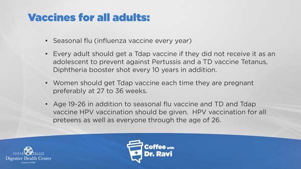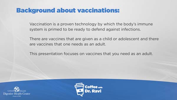In this week’s video we are discussing the vaccines that you need as an adult. We talk about what vaccines are, how they work, what you need and the different types of vaccines you should get if you have certain health conditions. We also discuss who shouldn’t be getting a vaccine because of certain health related issues.