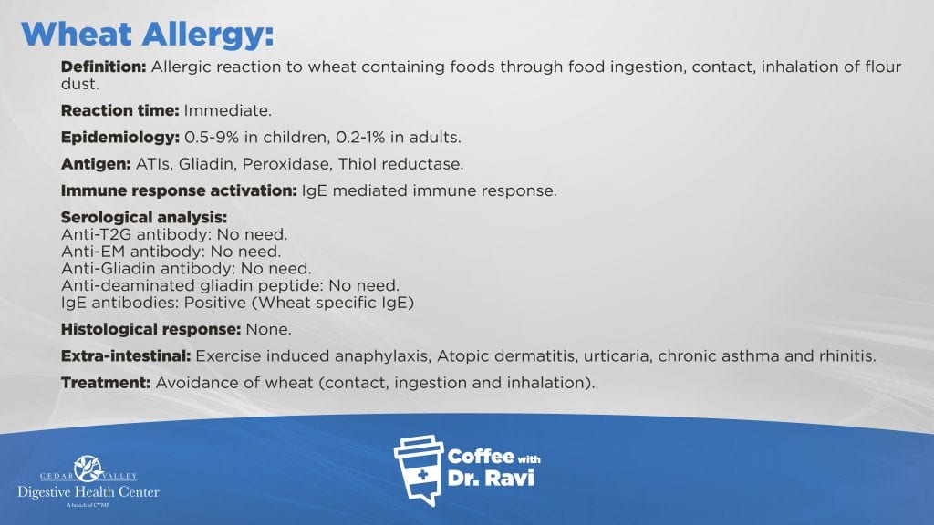 In this week’s video we are discussing the 3 different types of wheat related disorders. Celiac Disease Non-Celiac Gluten Sensitivity Wheat Allergy