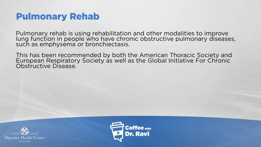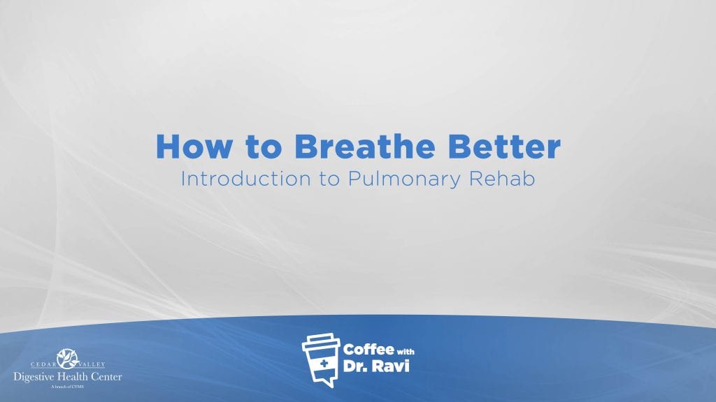 On this week’s Coffee with Dr. Ravi, we’re talking about pulmonary rehab. We’ll discuss what pulmonary rehab is, tips for managing lung disease, and examples of diaphragmatic breathing, a training exercise you can do to improve your breathing.