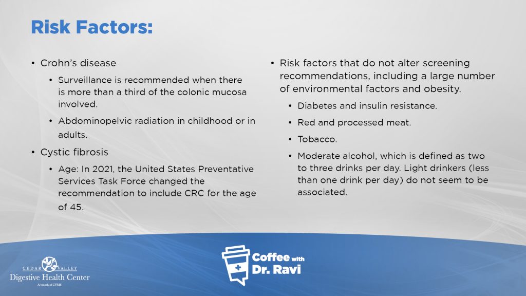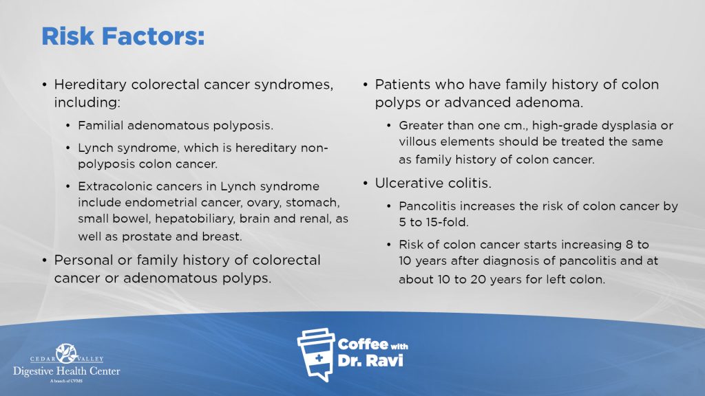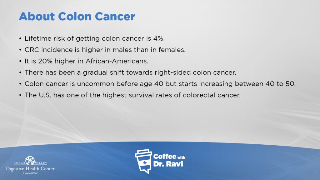 On today’s Coffee with Dr. Ravi, we’re wrapping up Colorectal Cancer Awareness Month by talking about colon cancer. We’ll give an overview of colon cancer, discuss risk factors and highlight some protective factors, including screenings.